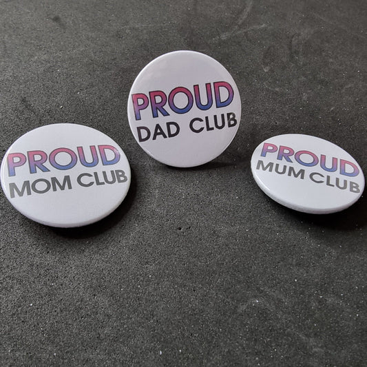 Proud mum / mom / dad club button/badge | Coming out gift | Bisexual pride