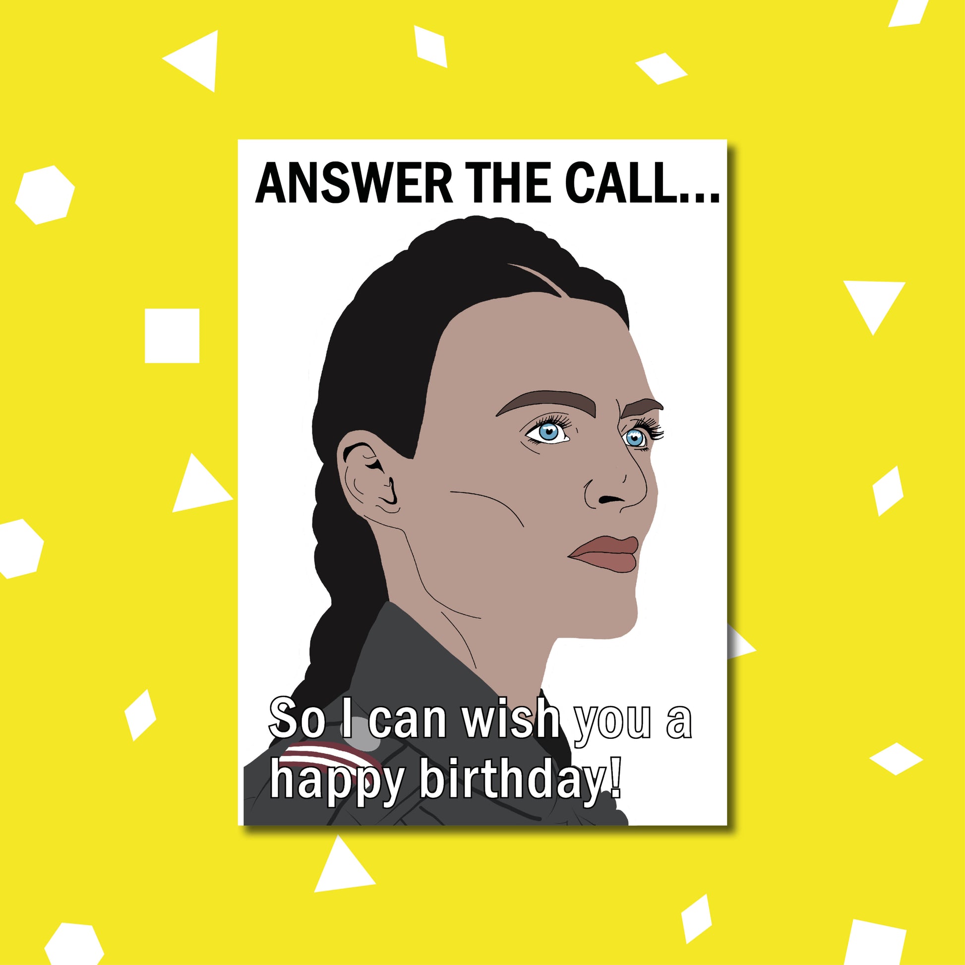 'Answer the call' birthday card. Inspired by 'Motherland: Fort Salem' and featuring General Alder played by Lyne Renee.