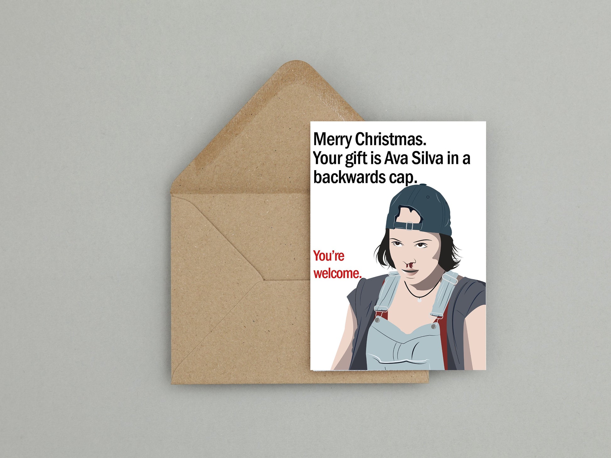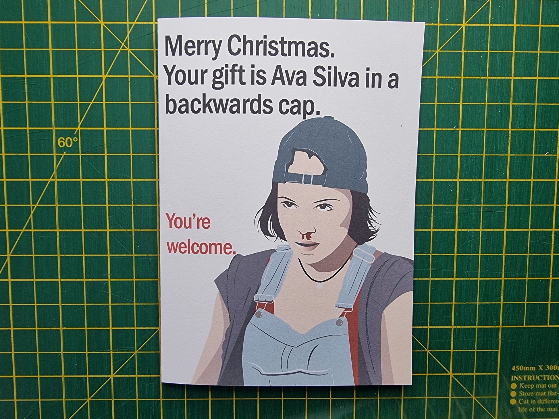 'Warrior Nun' Christmas card featuring Alba Baptista's character, Ava Silva, in her backwards cap! If you have a fan of Warrior Nun in your life, then this Christmas card is perfect for them!